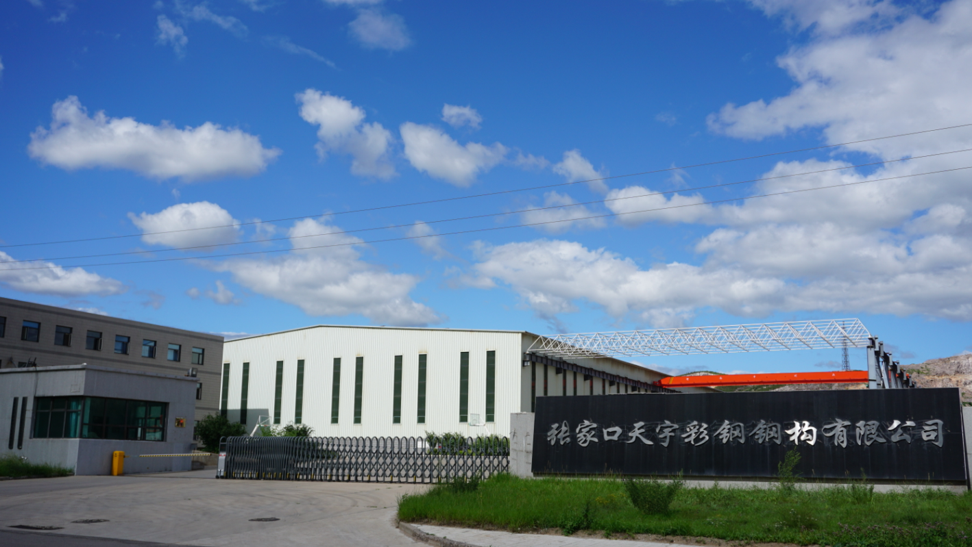 張家口天宇鋼結構工程有限公司成立于1998年,注冊資金1600萬元;張家口天宇彩鋼鋼構有限公司成立于2009年,注冊資金1680萬元,為張家口天宇鋼結構工程有限公司的全資子公司。公司位于張家口市東山產業集聚區,占地98畝,生產車間23000平方米,辦公用房2000平方米,是集鋼構件制作、彩鋼制品、鋼結構工程設計施工為一體的綜合性企業。產品有五大系列上百個品種,主要生產焊接H型鋼及非標鋼構件制作、彩鋼壓型板、彩鋼夾心復合板、巖棉復合板、冷庫專用板;承攬球型網架、門式鋼架、大型鋼結構廠房、車間、多層鋼結構的設計施工、技術咨詢服務等。是張家口市成立較早、規模大的彩鋼、鋼構企業。