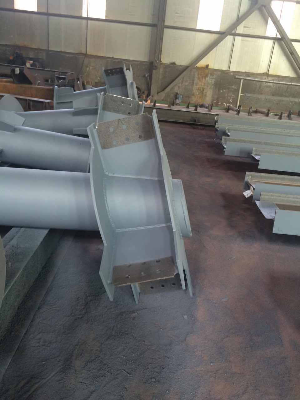 9月份我公司承接了內蒙古博物館項目的鋼結構制作工程,博物館圓管柱制作難度大,四向牛腿雙向角度,上下相貫口,柱腳板與圓管不在同一圓心,柱腳安裝孔無規則,裝配難度大。