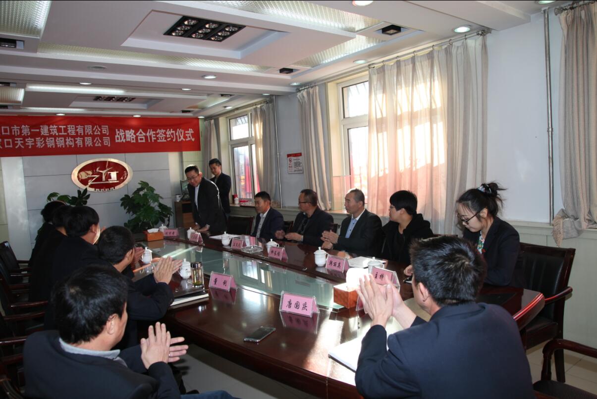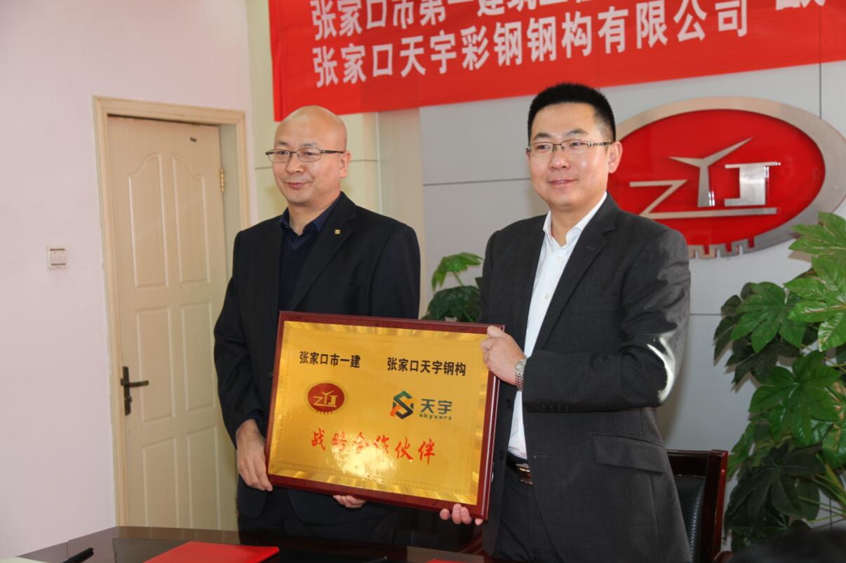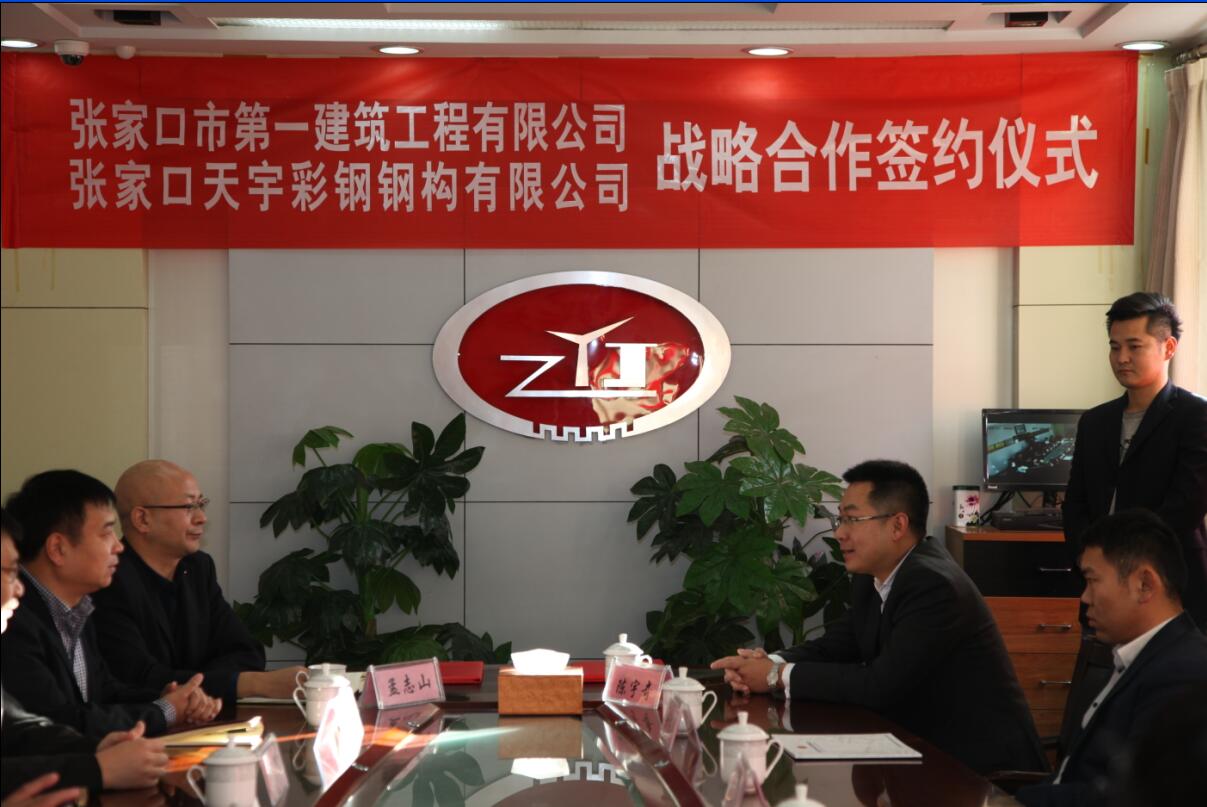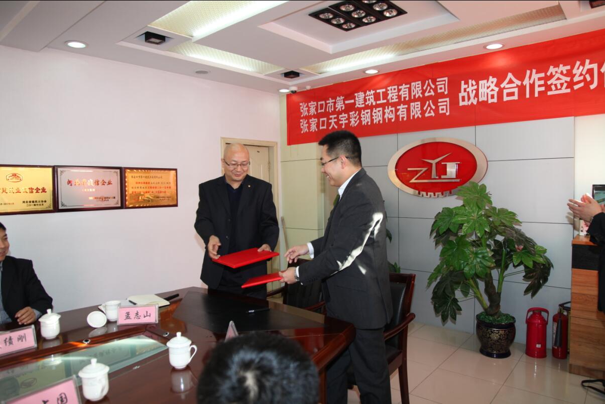 北京時間2016年11月22日上午9時,張家口天宇彩鋼鋼構有限公司與張家口市第一建筑工程有限公司達成戰略合作。強強聯合,為張家口的建筑事業增光添彩。